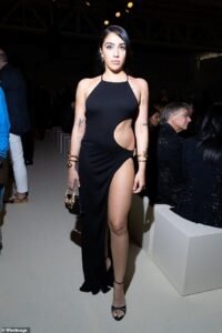 Gənc müğənni 2026-cı ilin yaz/yay kolleksiyasının təqdimatını izləmək üçün ön sırada əyləşib.